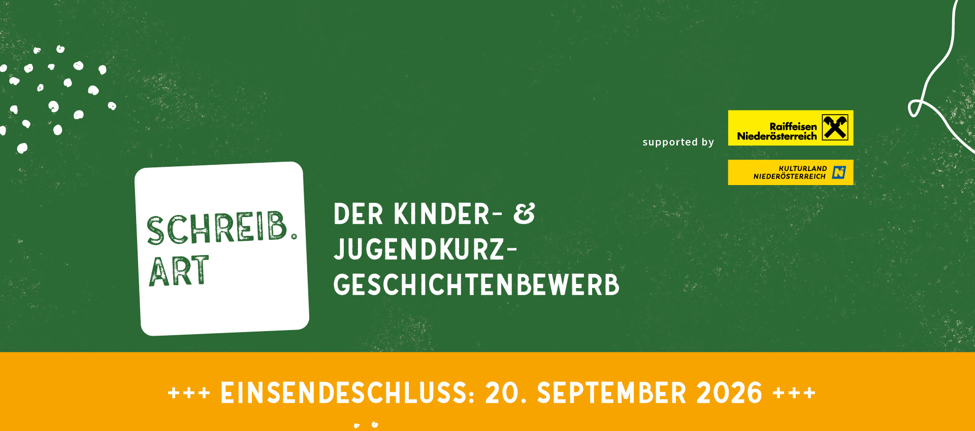 Der schreib.art Kinder- & Jugend-Kurzgeschichtenbewerb bietet allen SchülerInnen ab dem vollendeten 10. Lebensjahr, die eine österreichische Schule besuchen UND/ODER ihren Wohnsitz in Österreich haben die Möglichkeit, eine selbstverfasste, noch nicht publizierte Geschichte einzureichen.